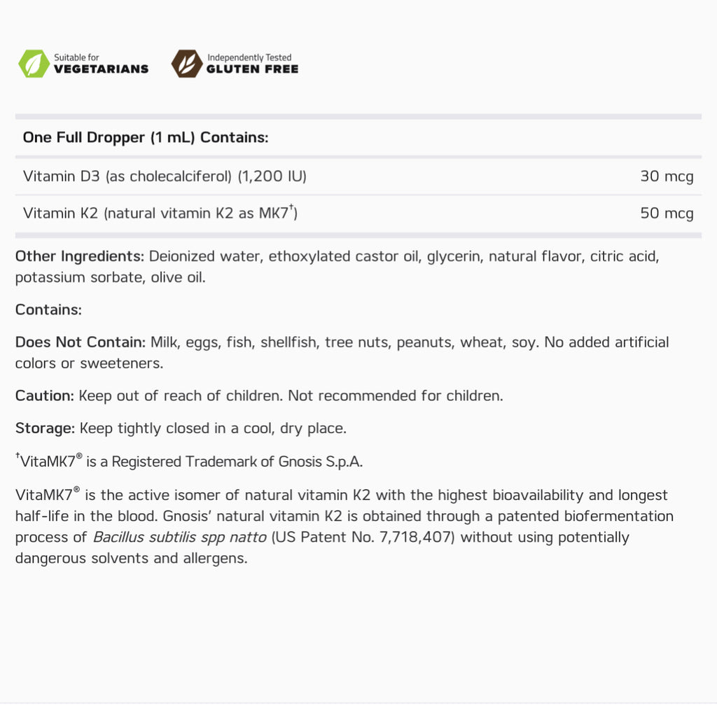 This formula includes the patented VitaMK7®, a natural vitamin K2 (as MK7) which supports enhanced utilization of calcium in the bloodstream.* It is an all-trans natural menaquinone-7 with the highest bioavailability and longest half-life in the blood.* VitaMK7® is shown in human clinical studies to increase osteocalcin (calcium-binding protein) levels, enhancing the body’s ability to utilize calcium in the bloodstream.* It is also shown to prevent bone loss and promote bone integrity while significantly reducing the incidence of arterial calcification, promoting optimal cardiovascular function.* An in-vitro study shows VitaMK7® inhibits the production of PGE-2, a prostaglandin that acts as a potent stimulator of bone loss.* It is non-GMO and solvent-free and processed under the strictest purity standards.